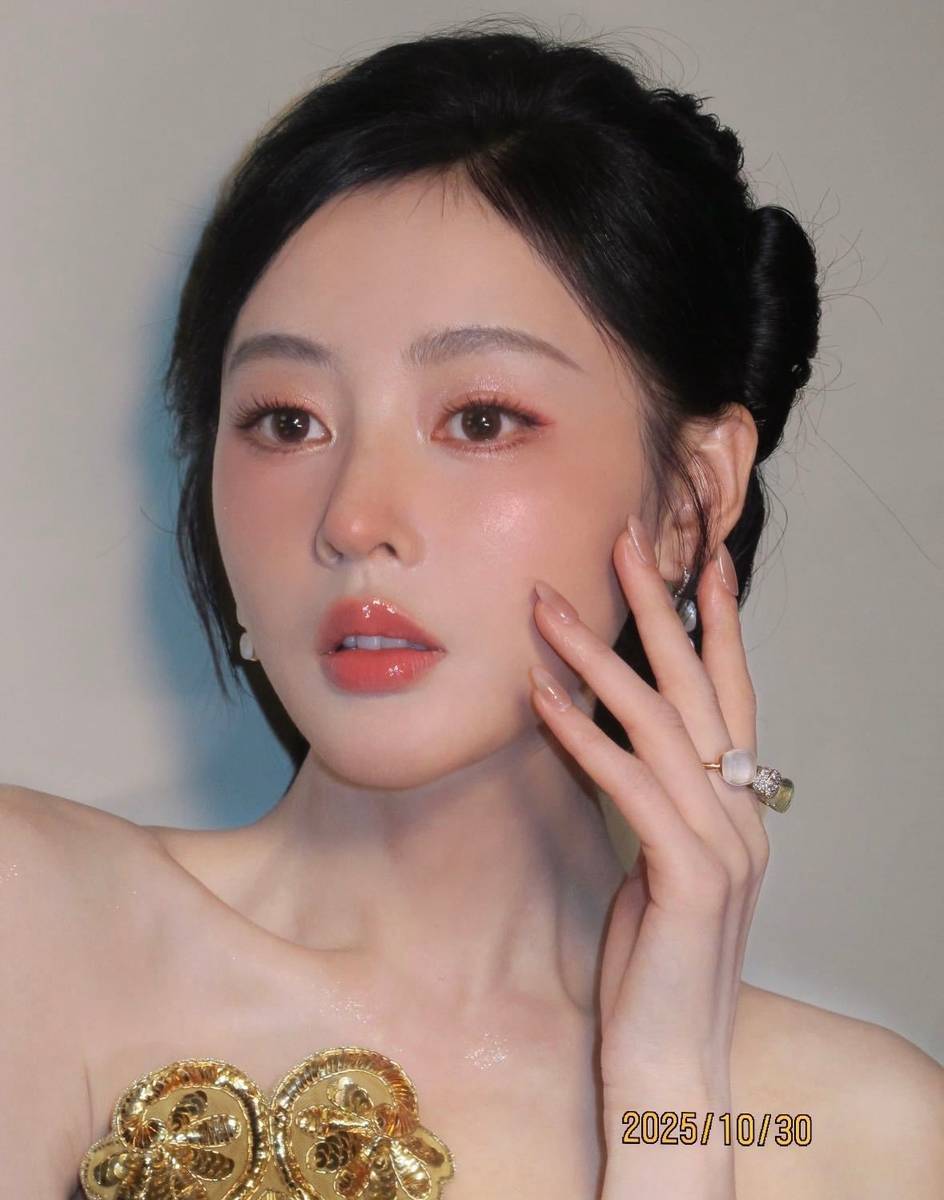 张天爱的这组造型,也为当下女性的正式场合穿搭提供了绝佳范本。在很多人看来,金色礼服难以驾驭,容易显得浮夸或老气,而她用实际造型证明,只要选对面料、把握好剪裁与妆容的平衡,金色也能展现出优雅大气的气质。清透的妆容、简约的配饰、挺拔的体态,这三点看似简单的搭配技巧,却能让整体造型提升一个档次,这正是张天爱时尚优雅密码的核心——不追求外在的堆砌,而是注重内在气质与外在造型的和谐统一。